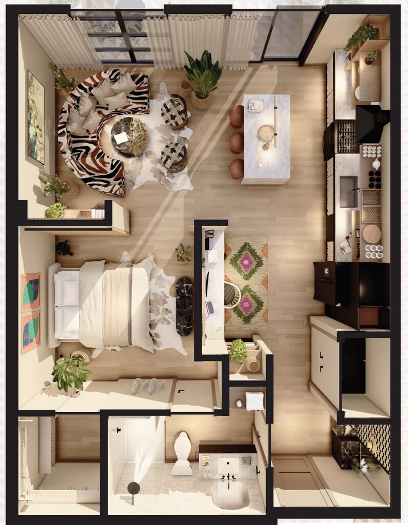 1 Dormitorio, 1 Baño, 787 pies²Disponible AhoraGalería del Modelo