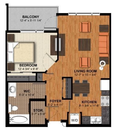 1 Dormitorio, 1 Baño, 744 pies²Disponible AhoraGalería del Modelo
