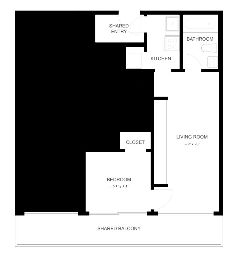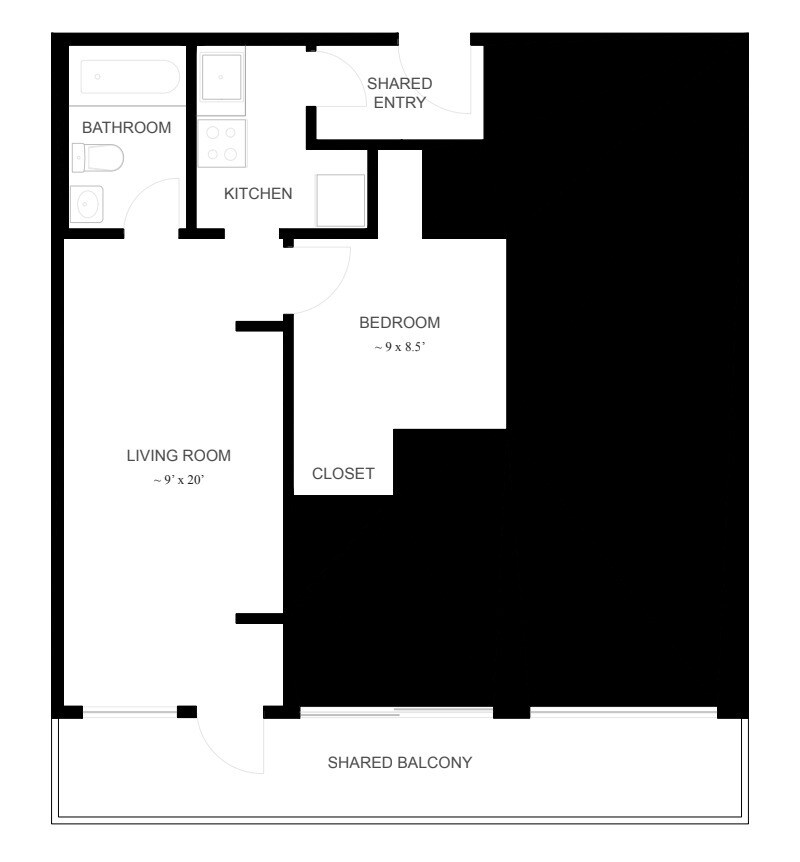 1 Dormitorio, 1 Baño, 400 pies²Disponible January 20, 2026Galería del Modelo