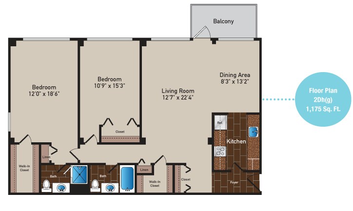Unidad: 0107 - Imagen Unidad de apartamento: 0226Modelo de apartamento: Two Bedroom 2 Bath2 Dormitorios, 2 Baños, 1175 sq ftDisponible Ahora![]()