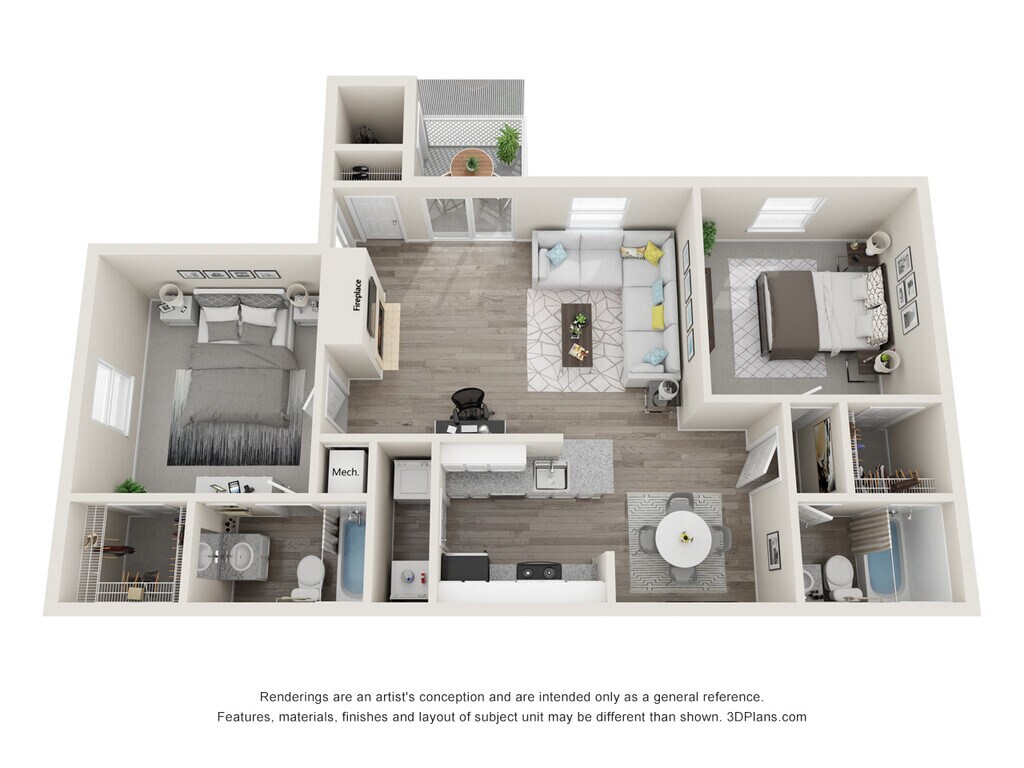 2 Dormitorios, 2 Baños, 1063 pies²Galería del Modelo