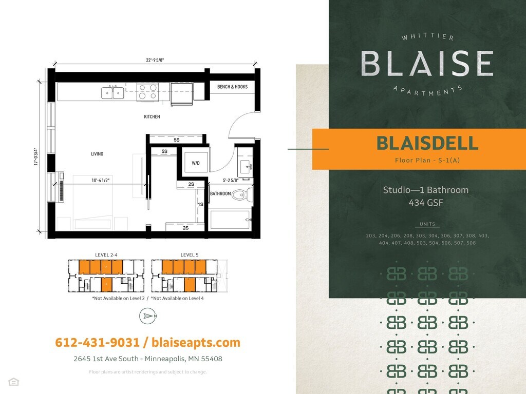 Modelo de apartamento: BlaisdellEstudio, 1 Baño, 434 sq ftDisponible AhoraPlanosFotos![]()
