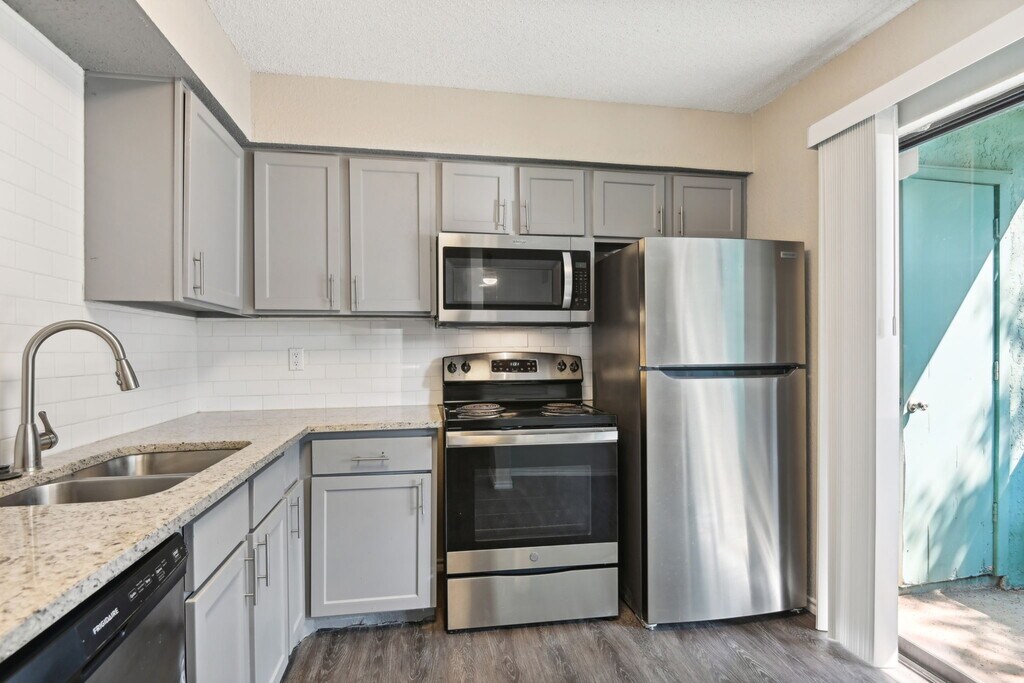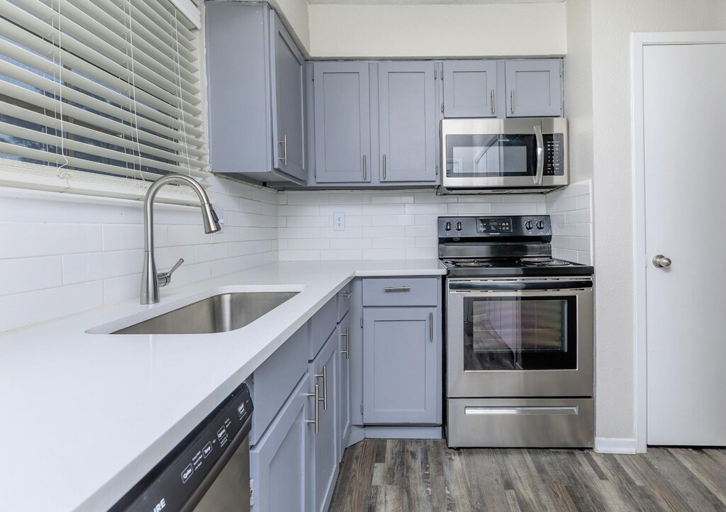 Cuando vives en Blakely Apartment Homes, disfrutas de una larga lista de comodidades que están dentro y fuera de tu apartamento. Prepara tus comidas favoritas en tu cocina comedor, que cuenta con electrodomésticos de acero inoxidable, triturador de basura y un comedor adyacente. Los vestidores y el almacenaje adicional hacen que sea fácil organizar tus pertenencias, mientras que un patio o balcón privado te permite relajarte cada día en paz. Date un chapuzón en nuestra piscina estilo centro turístico o disfruta del tan necesario tiempo de spa. También ofrecemos mantenimiento y administración en el lugar, servicios de recepción de paquetes y alojamiento que admite mascotas. Para obtener más información, ¡llama a Blakely Apartment Homes hoy mismo!