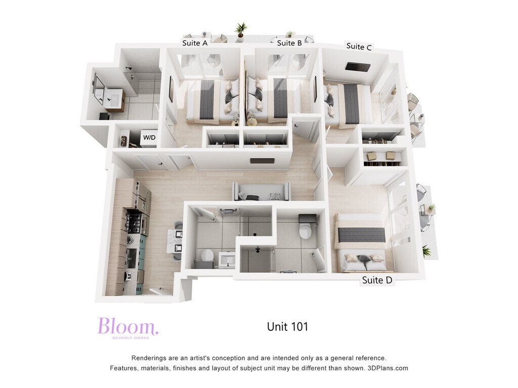 A boutique collection of modern luxury, Bloom Beverly Grove offers an exclusive co-living experience in the heart of Los Angeles' vibrant Fairfax District. Designed by critically acclaimed Warren Techentin Architecture, every detail is crafted for effortless sophistication. Our fully furnished suites within shared residences feature high-end finishes and breathtaking rooftop views-elevating everyday living to an art form. Thoughtfully furnished by Hä Studio, each home showcases custom-made pieces alongside selections from renowned brands like Restoration Hardware. Enjoy state-of-the-art Viking appliances, personalized climate controls, and sleek design elements that reflect modern elegance. With keyless entry and the convenience of weekly in unit common area cleaning, Bloom Beverly Grove is designed for seamless, elevated living. Just steps from internationally acclaimed dining, including Jon & Vinny's, and the world-class shopping of The Grove, Bloom places the best of Los Angeles at your doorstep. More than a place to live, it's a place to thrive.
