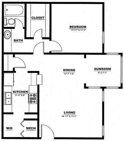 Modelo de apartamento: 1x11 Dormitorio, 1 Baño, 875-885 sq ftNo Disponible![]()
