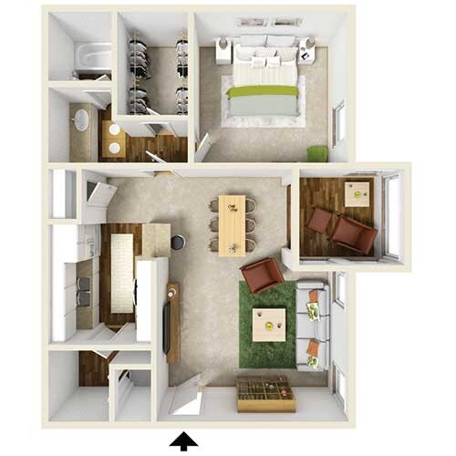 1 Dormitorio, 1 Baño, 875-885 pies²Galería del Modelo
