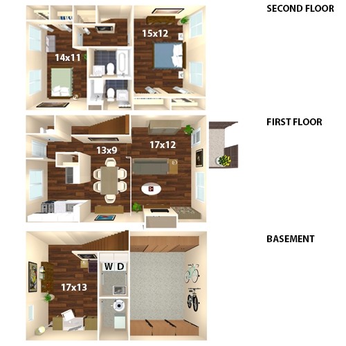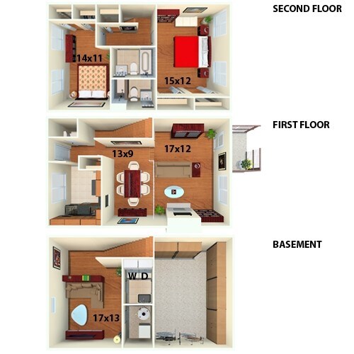 Modelo de apartamento: Classic Townhome - 3 Bedroom3 Dormitorios, 2.5 Baños, 2000 sq ftNo Disponible![]()