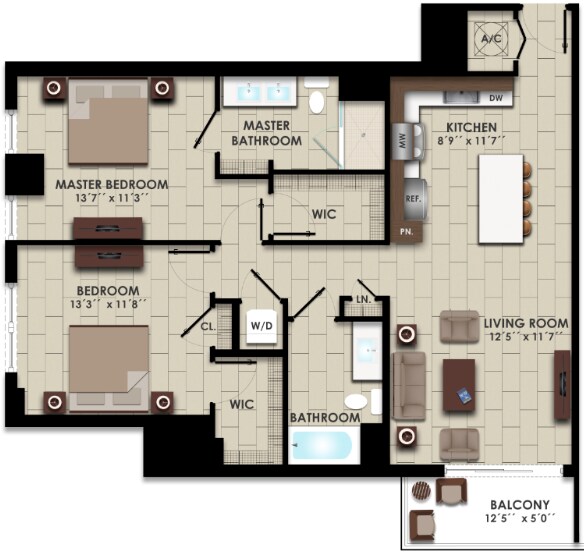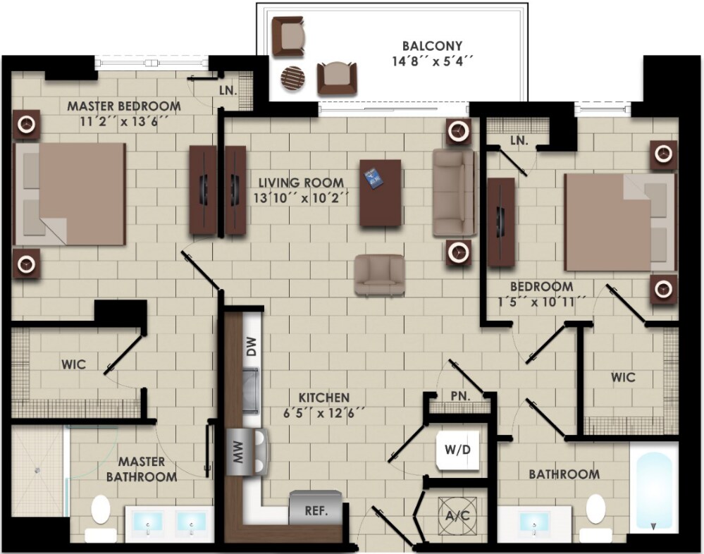 Modelo de apartamento: S2Desde $2,254Estudio, 1 Baño, 520 sq ftDisponible Ahora![]()