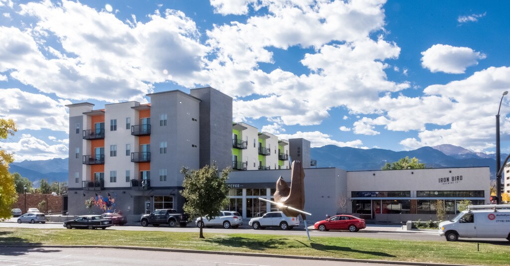 En Blue Dot Place, creemos que la vida urbana trasciende las paredes de una casa y te inspira a conectarte con la gente y la ciudad a tu alrededor, ya sea que tomes una pinta de cerveza en la cervecería al final de la calle, pedalees a uno de los puntos de partida cercano para ir a las montañas o pasees al perro de tu vecino, somos una comunidad. Vivir aquí te conecta a la aventura, la exploración, y la creatividad, en un lugar privilegiado en el centro. Disfruta de la vida urbana a minutos de numerosos senderos para caminar y andar en bicicleta, restaurantes y lugares de entretenimiento, y de fácil acceso a la autopista interestatal 25. Con impresionantes vistas de las montañas y urbanas, elije apartamentos de una o dos habitaciones de bajo consumo. Cada apartamento cuenta con un balcón privado, encimeras de cuarzo, pisos de estilo de madera noble, techos de 10 pies de altura con ventiladores de techo, electrodomésticos de acero inoxidable, y mucho más. Otras comodidades incluyen una entrada segura, cerca de estacionamiento para bicicletas en el interior, estacionamiento en garaje reservado y parque para perros. Haz una cita para realizar un recorrido por Blue Dot Place, donde Colorado Springs Urbanites llama hogar.