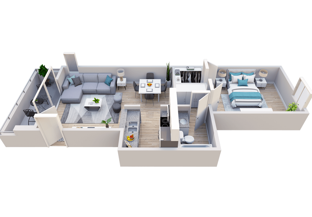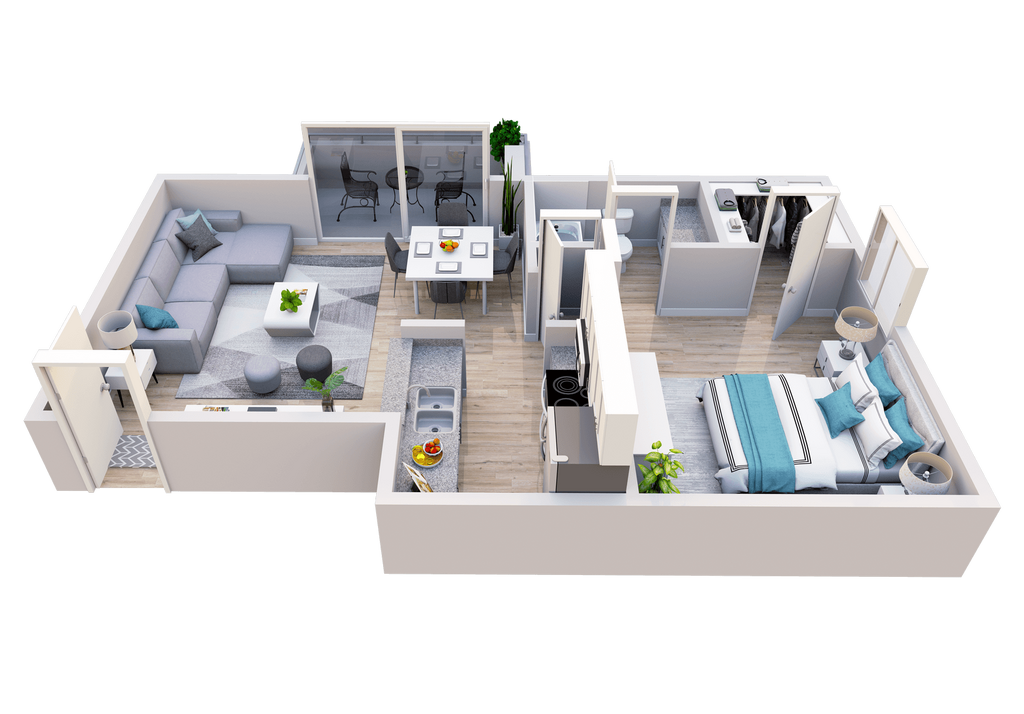 1 Dormitorio, 1 Baño, 825 pies²Disponible AhoraGalería del Modelo