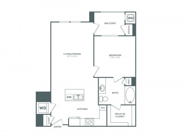 Modelo de apartamento: The Surfside1 Dormitorio, 1 Baño, 695 sq ftDisponible October 31, 2025Los planos de la planta son una interpretación artística. Todas las dimensiones son aproximadas. Los tamaños o el detalle del producto real y sus especificaciones pueden variar. No todas las características están disponibles en todos los hogares para rentar. Los precios y la disponibilidad están sujetos a cambios. El alquiler que se muestra es mensual. Se pueden aplicar ciertos cargos, por ejemplo, entrega de paquetes, recolección de basura, agua, servicios, etc. Depositos varian. Consulta a un representante para conocer detalles.