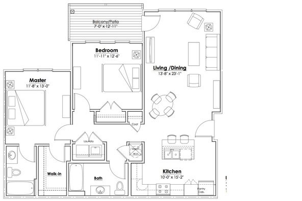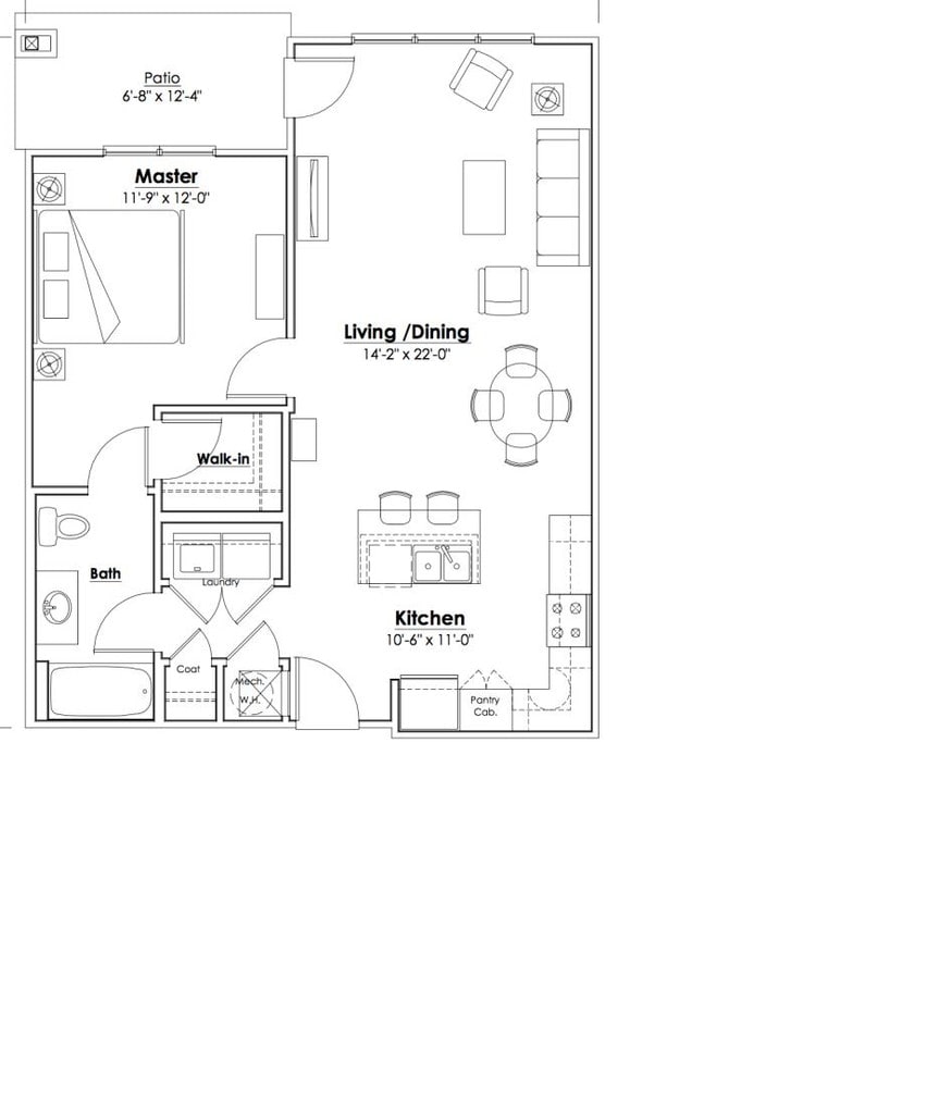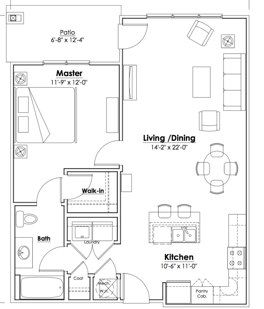 Modelo de apartamento: A1-Building 3$1,2951 Dormitorio, 1 Baño, 807 sq ftDisponible Ahora![]()