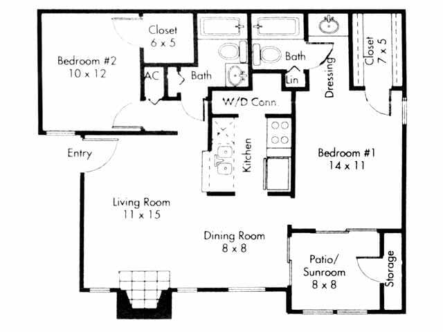 Modelo de apartamento: A2Desde $8251 Dormitorio, 1 Baño, 720-780 sq ftDisponible Ahora![]()