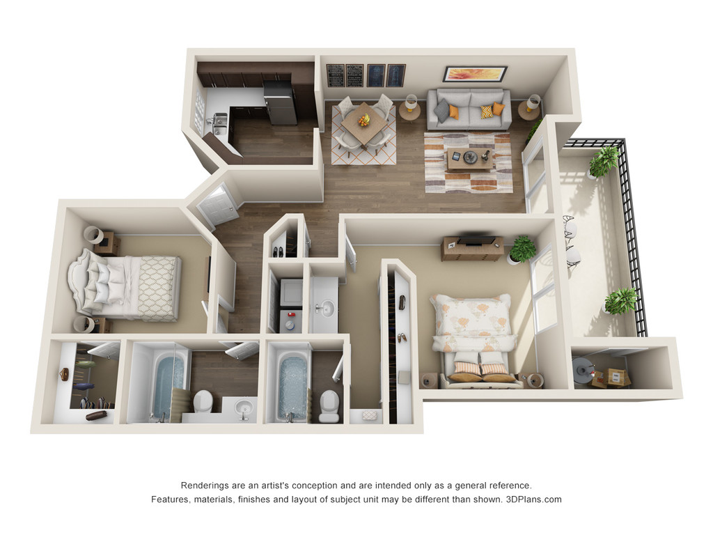 2 Dormitorios, 2 Baños, 981 pies²Disponible January 23, 2026Galería del Modelo