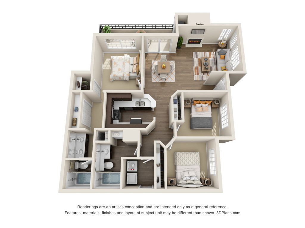 3 Dormitorios, 2 Baños, 1244 pies²Disponible AhoraGalería del Modelo