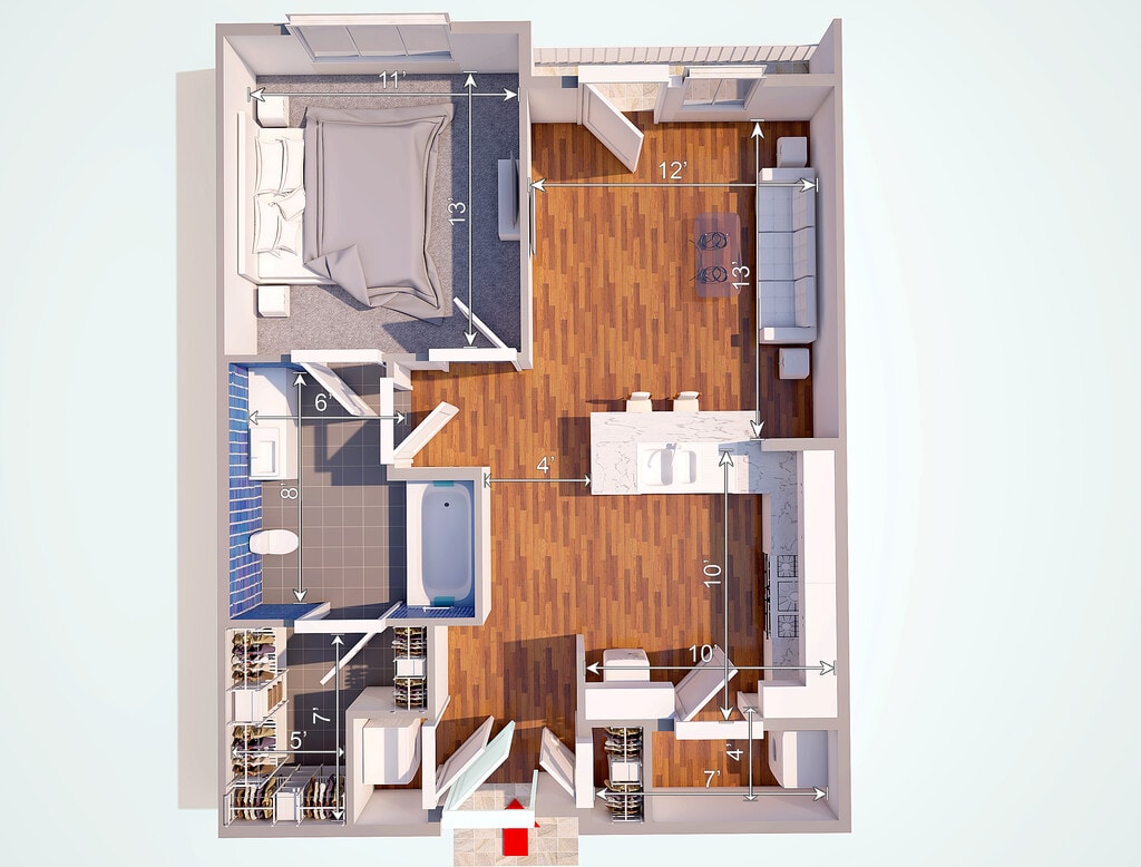 The Highland - Plano 1 Unidad de apartamento: 304Modelo de apartamento: The Highland$1,475Estudio, 1 Baño, 663 sq ftDisponible AhoraLos planos son representaciones artísticas. Todas las dimensiones son aproximadas. El producto y las especificaciones reales pueden variar en tamaño o detalle. No todas las características están disponibles en cada vivienda en alquiler. Por favor, consulta con un representante para obtener más detalles.