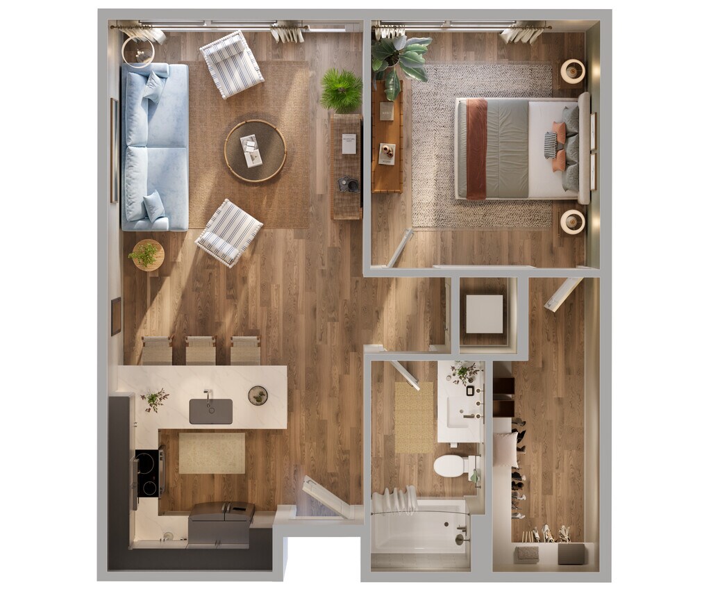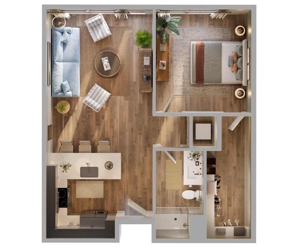 1 Dormitorio, 1 Baño, 728 pies²Disponible AhoraGalería del Modelo