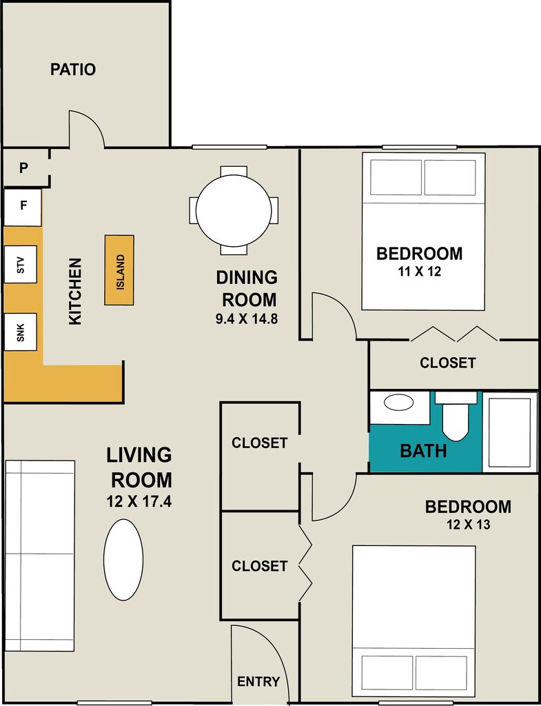 Modelo de apartamento: 2 Bedroom 1 Bathroom2 Dormitorios, 1 Baño, 986 sq ftDisponible October 31, 20252 Bedroom 1 Bathroom - Plano 1 Unidad de apartamento: J05Modelo de apartamento: 2 Bedroom 1 Bathroom2 Dormitorios, 1 Baño, 986 sq ftDisponible October 31, 20252 Bedroom 2 Bathroom