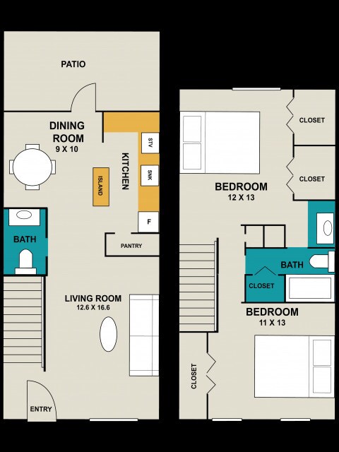 2 Dormitorios, 1.5 Baños, 1182 pies²Disponible AhoraGalería del Modelo