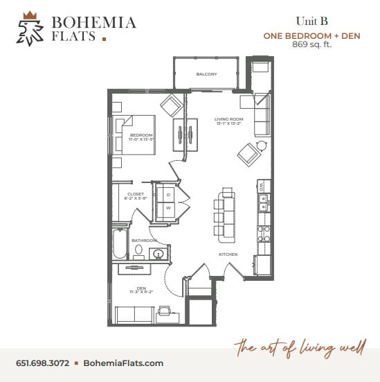 Modelo de apartamento: B Style + DenDesde $1,7751 Dormitorio, 1 Baño, 869 sq ftDisponible AhoraB Style + Den - Plano 1 B1 Style + Den