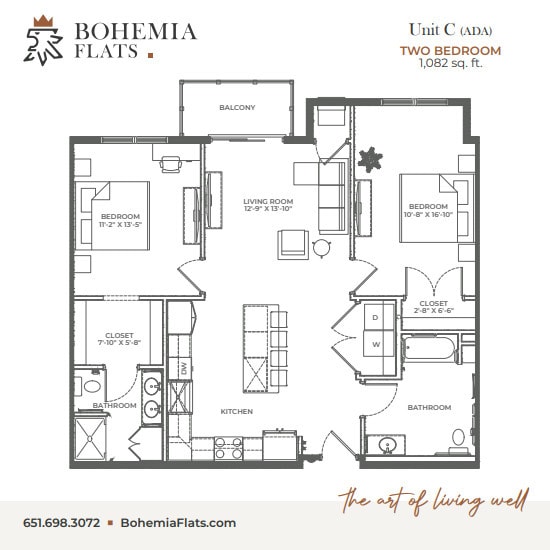 Modelo de apartamento: C Style$2,1502 Dormitorios, 2 Baños, 1082 sq ftDisponible AhoraC Style - Plano 1 C Style ADA