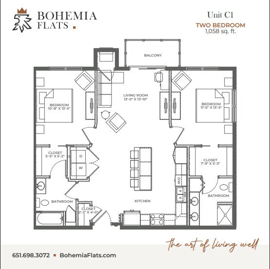 Modelo de apartamento: C1 StyleDesde $2,1502 Dormitorios, 2 Baños, 1058 sq ftDisponible AhoraC1 Style - Plano 1 C Style
