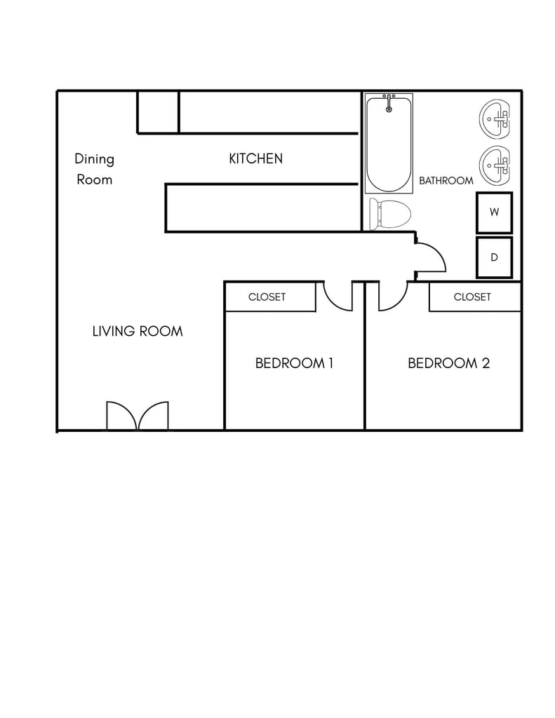 2 Dormitorios, 1 Baño, 750 pies²Disponible AhoraGalería del Modelo