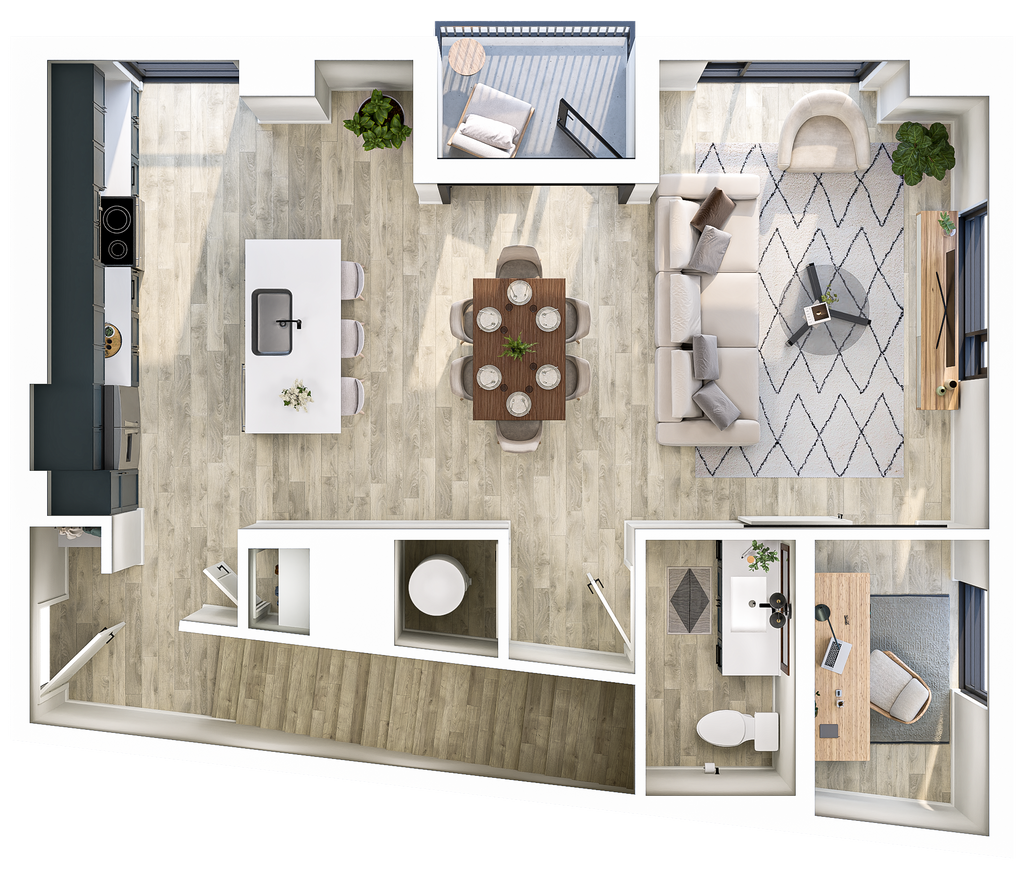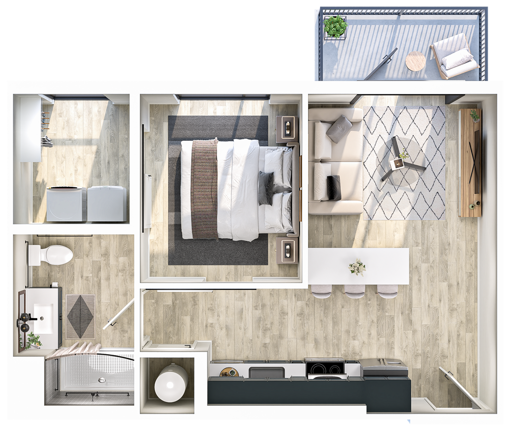 Estudio, 1 Baño, 595 pies²Disponible AhoraGalería del Modelo