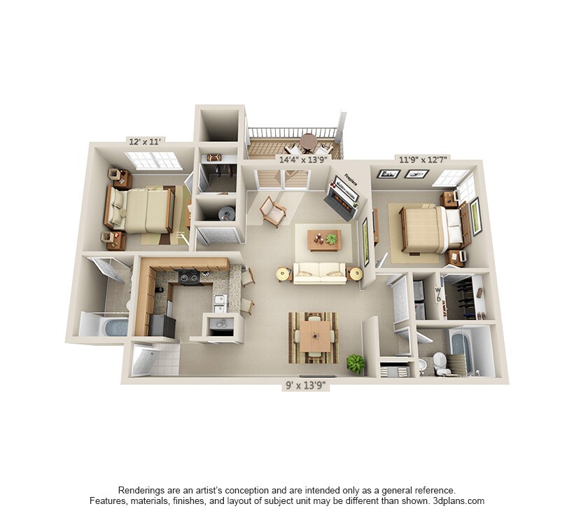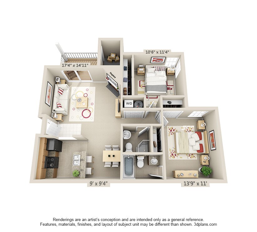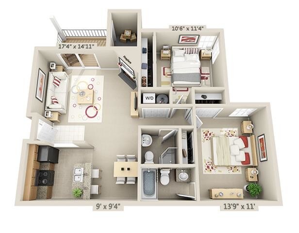 1 Dormitorio, 1 Baño, 750 pies²Disponible AhoraGalería del Modelo