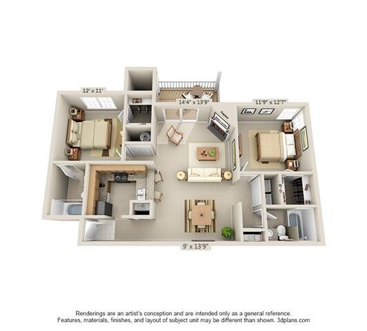 Modelo de apartamento: 1 Bed 1 Bath ADesde $1,3871 Dormitorio, 1 Baño, 750 sq ftDisponible Ahora![]()