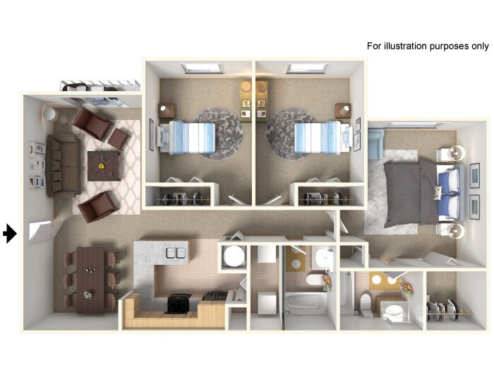 Modelo de apartamento: Daisy2 Dormitorios, 2 Baños, 921 sq ftNo DisponibleDaisy - Plano 1 3 Dormitorios