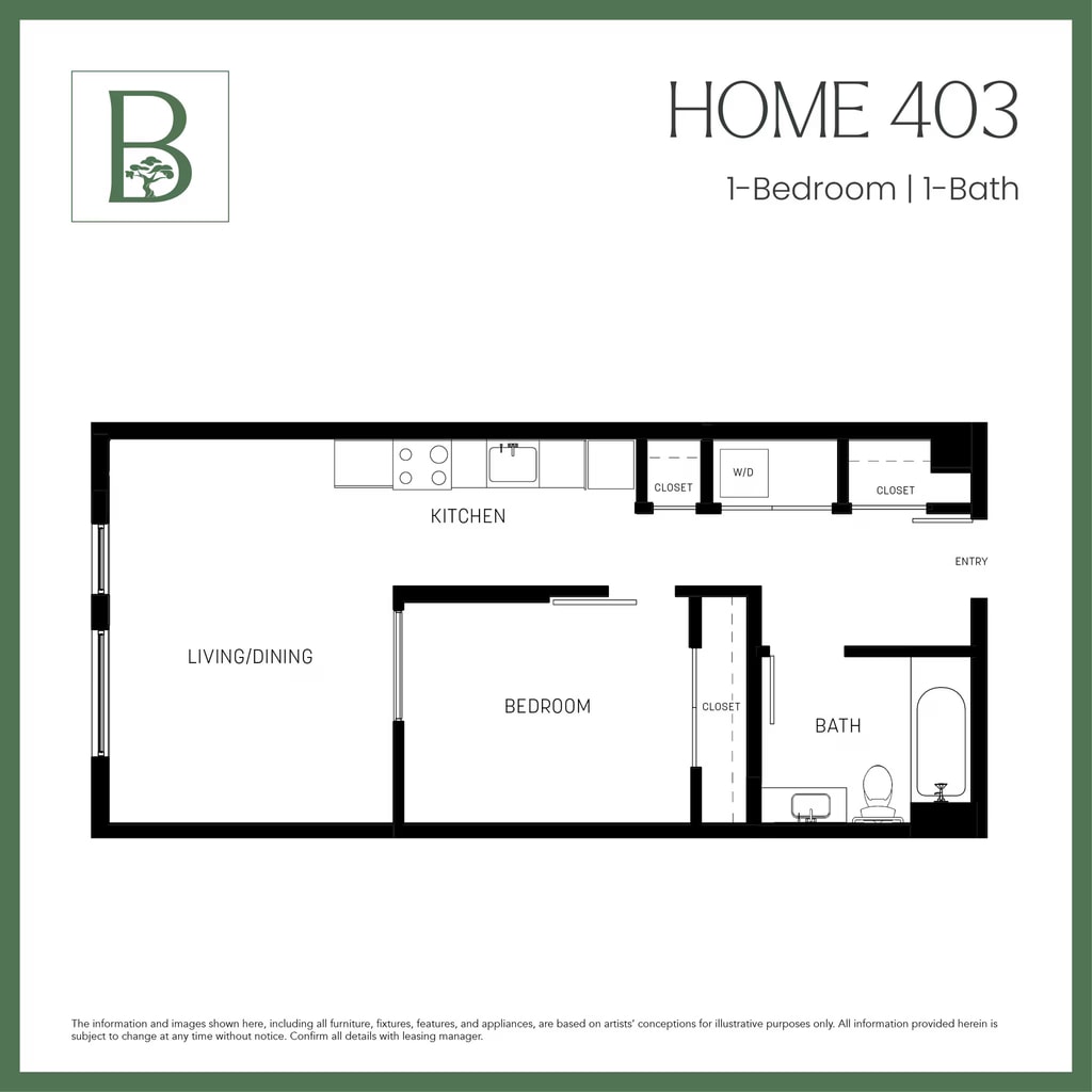 1 Dormitorio, 1 Baño, 512-597 pies²Disponible AhoraGalería del Modelo