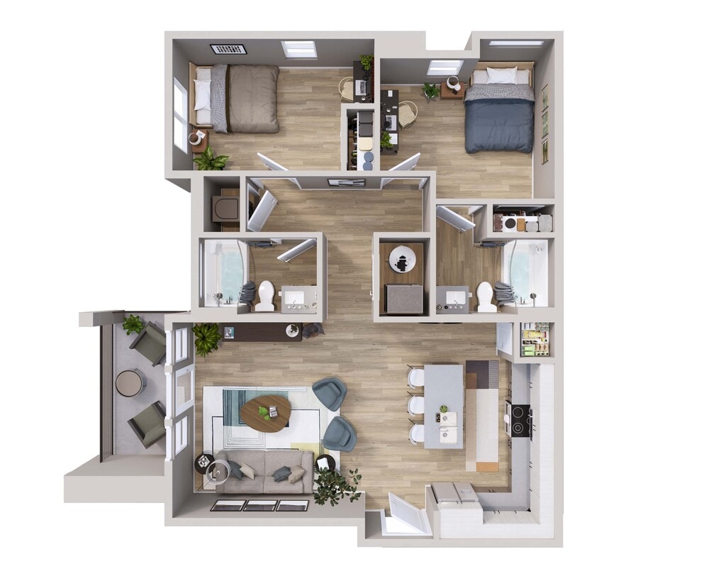 Modelo de apartamento: 2X2Desde $1,3992 Dormitorios, 2 Baños, 1038 sq ftDisponible January 5, 2026![]()