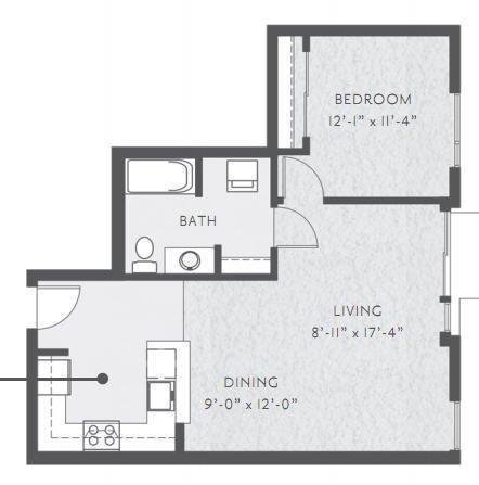 1 Dormitorio, 1 Baño, 687 pies²Galería del Modelo