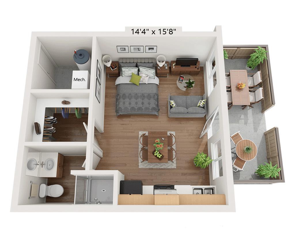 Unidad de apartamento: N/A-123Modelo de apartamento: Studio E1B$1,603Estudio, 1 Baño, 408 sq ftDisponible November 8, 2025PlanosFotos![]()