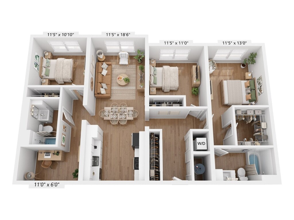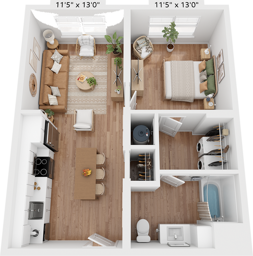 1 Dormitorio, 1 Baño, 662 pies²Disponible AhoraGalería del Modelo