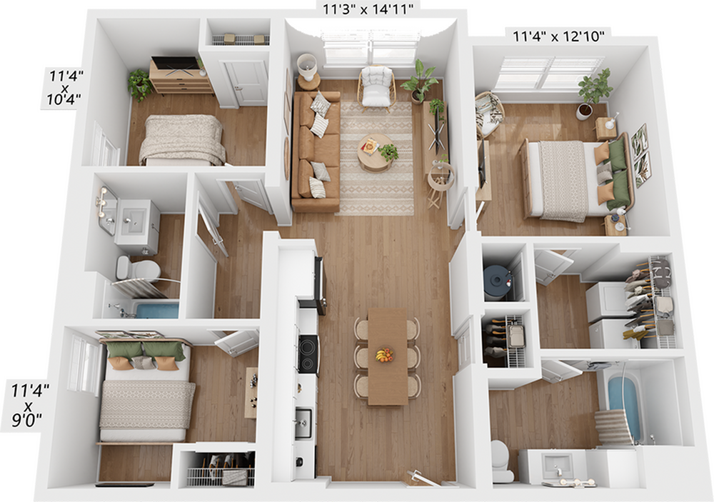 Modelo de apartamento: B1Desde $1,8992 Dormitorios, 2 Baños, 962 sq ftDisponible AhoraLos planos de la planta son una interpretación artística. Todas las dimensiones son aproximadas. Los tamaños o el detalle del producto real y sus especificaciones pueden variar. No todas las características están disponibles en todos los hogares para rentar. Los precios y la disponibilidad están sujetos a cambios. El alquiler que se muestra es mensual. Se pueden aplicar ciertos cargos, por ejemplo, entrega de paquetes, recolección de basura, agua, servicios, etc. Depositos varian. Consulta a un representante para conocer detalles.