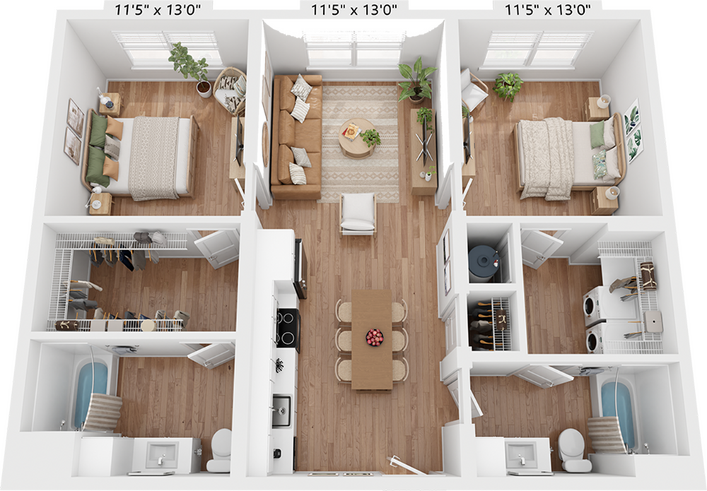 2 Dormitorios, 2 Baños, 962 pies²Disponible AhoraGalería del Modelo