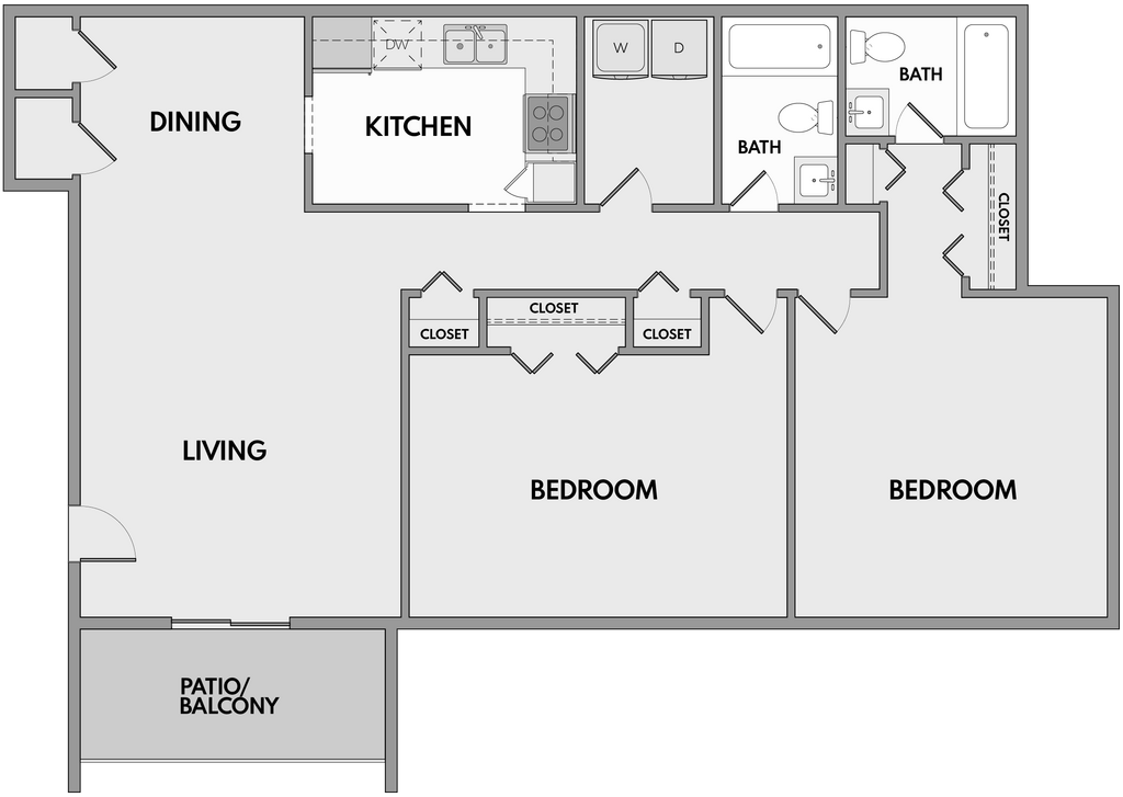 2 Dormitorios, 1 Baño, 905 pies²Disponible AhoraGalería del Modelo