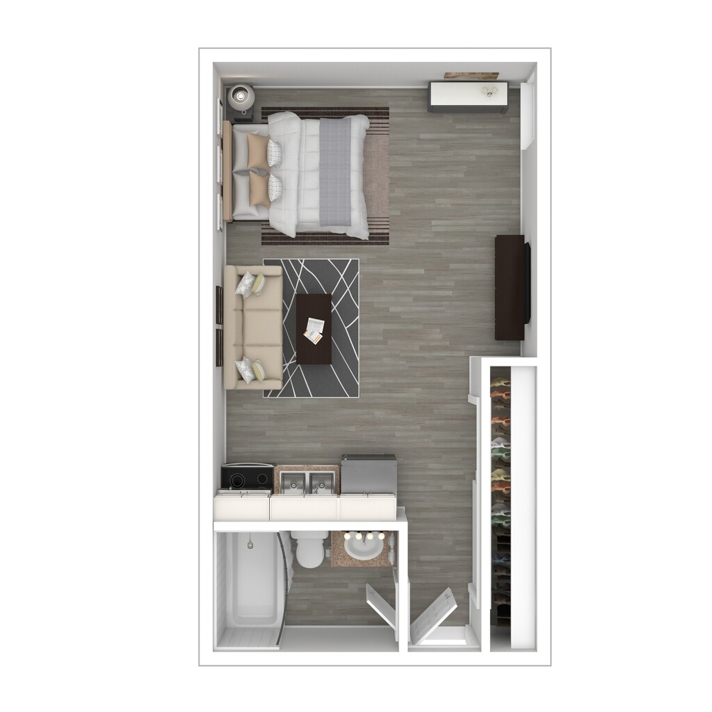 Modelo de apartamento: StudioDesde $1,175Estudio, 1 Baño, 464 sq ftDisponible AhoraPlanosFotos![]()
