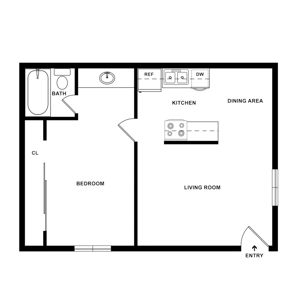 1 Dormitorio, 1 Baño, 560 pies²Disponible AhoraGalería del Modelo