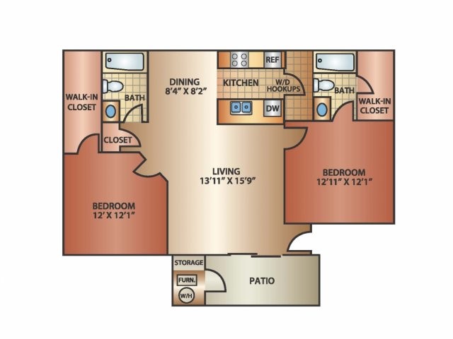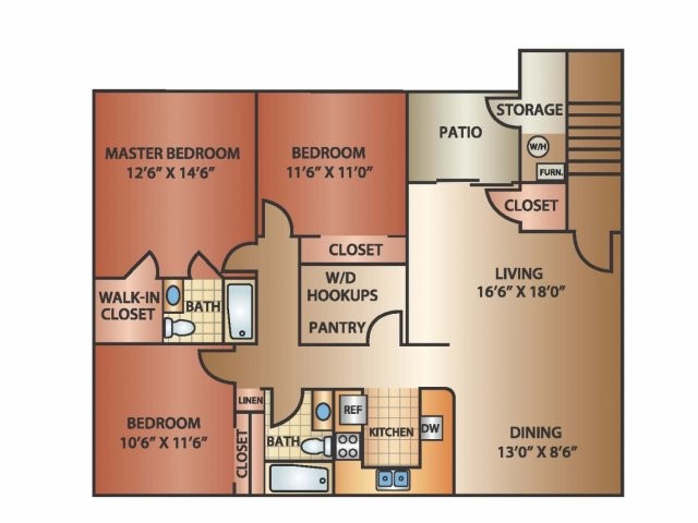 Modelo de apartamento: SapphireDesde $1,7503 Dormitorios, 2 Baños, 1350 sq ftDisponible Ahora![]()