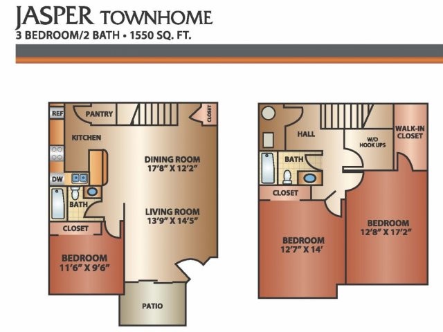 Modelo de apartamento: Jade Townhome$2,0953 Dormitorios, 2 Baños, 1550 sq ftNo Disponible![]()