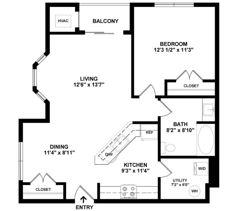 1 Dormitorio, 1 Baño, 779 pies²Disponible AhoraGalería del Modelo