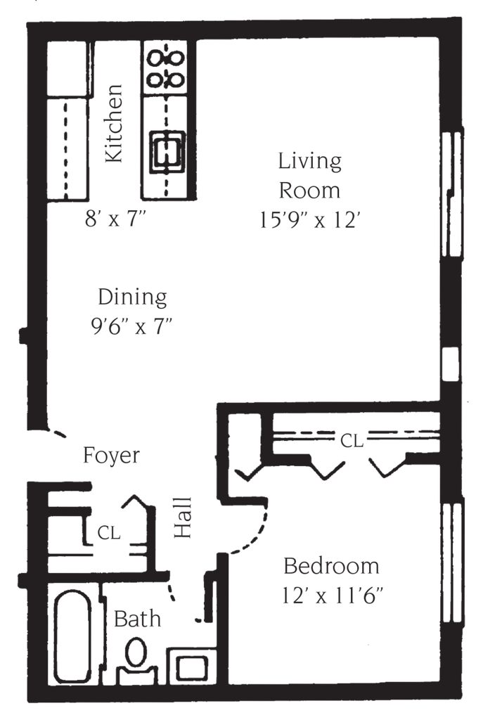 1 Dormitorio, 1 Baño, 715 pies²El más grandeEsta opción tiene las unidades más grandes para este modeloGalería del Modelo