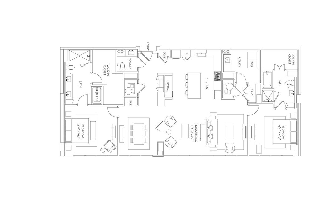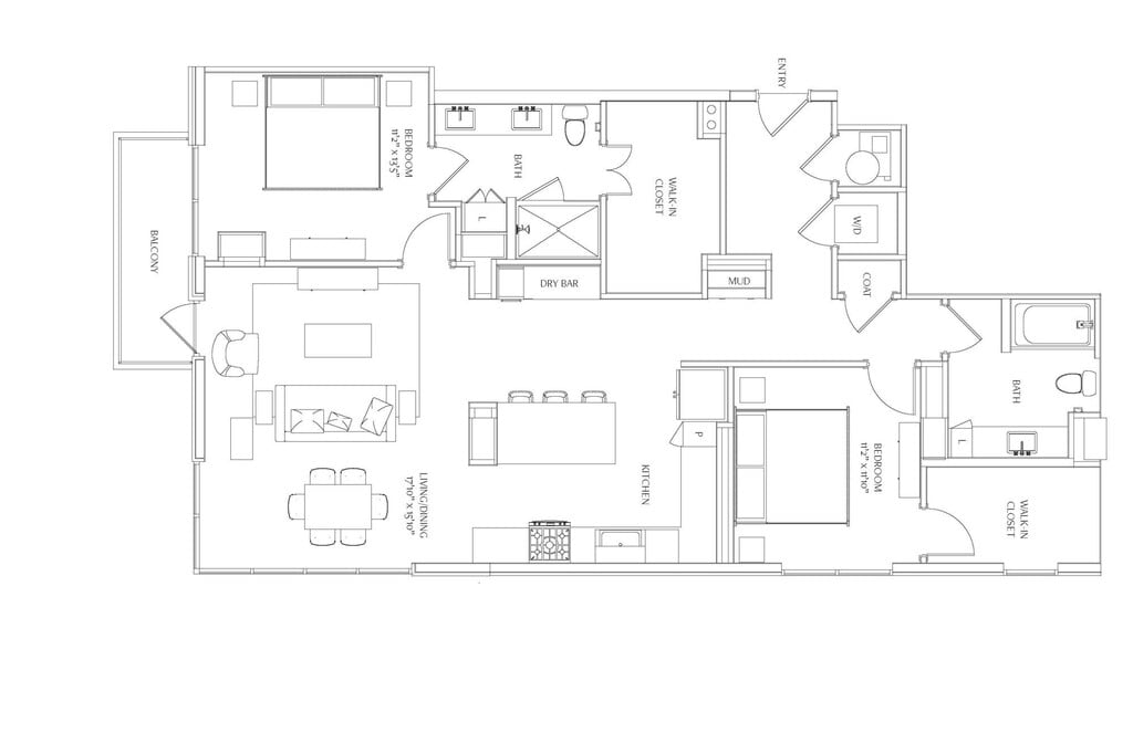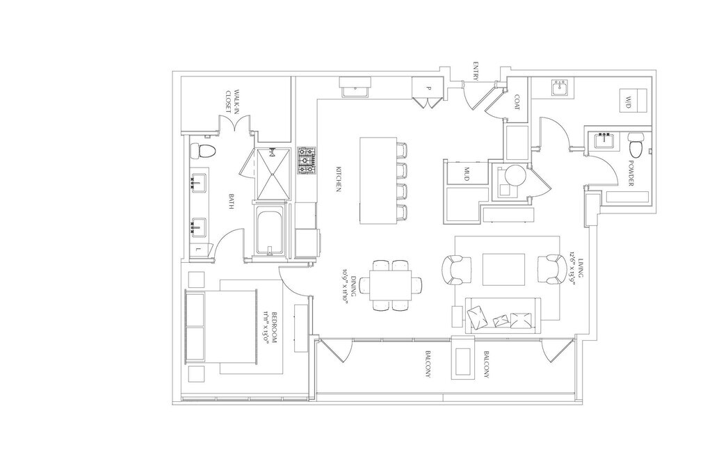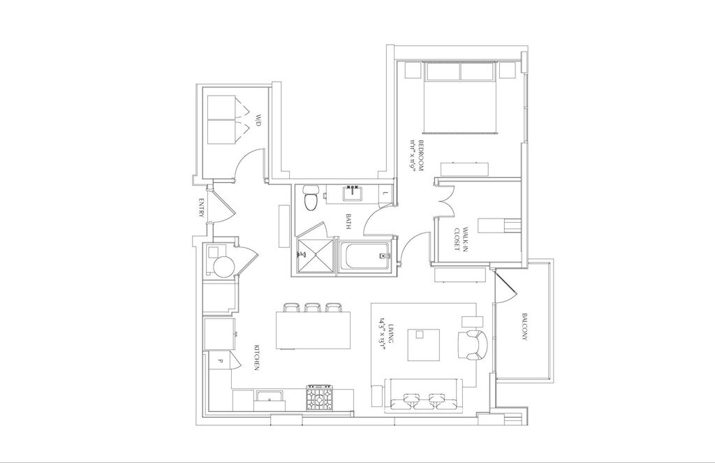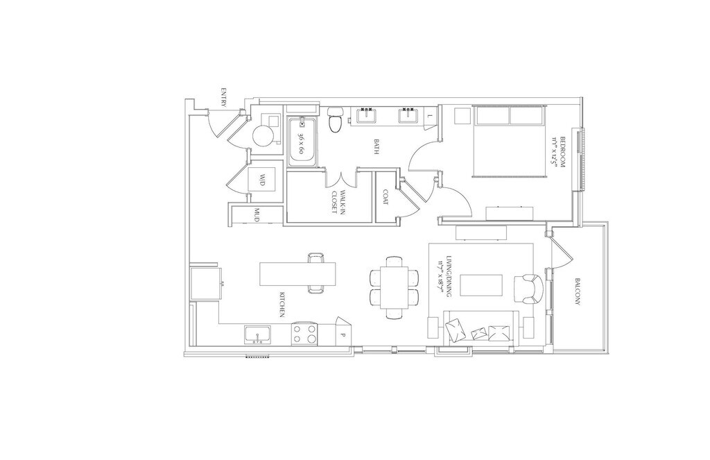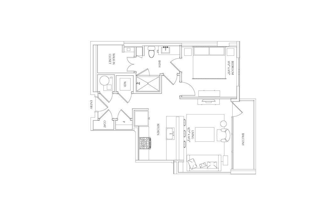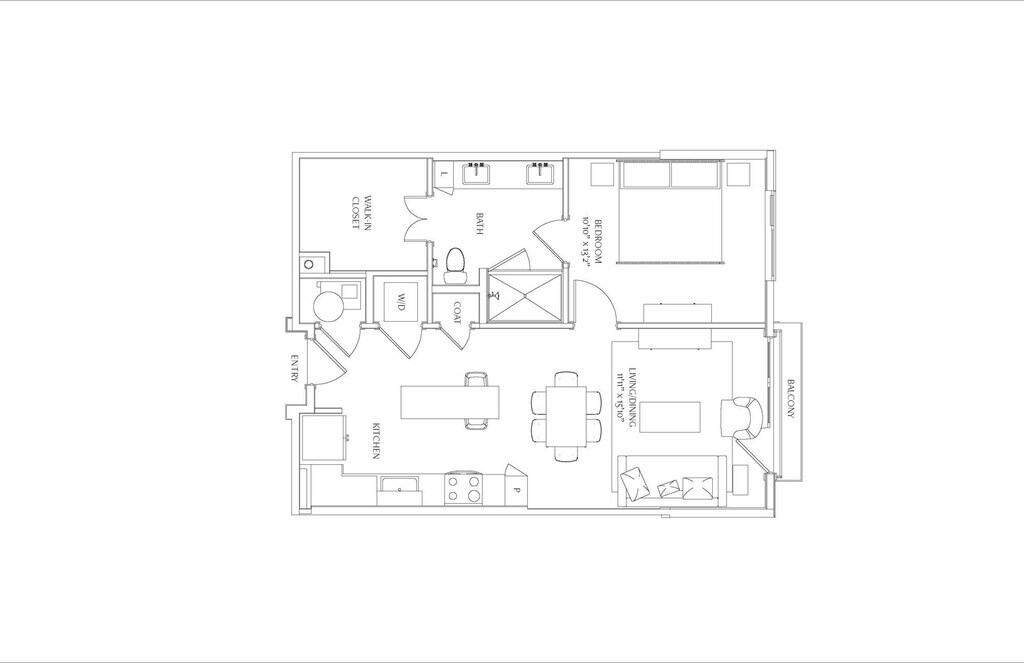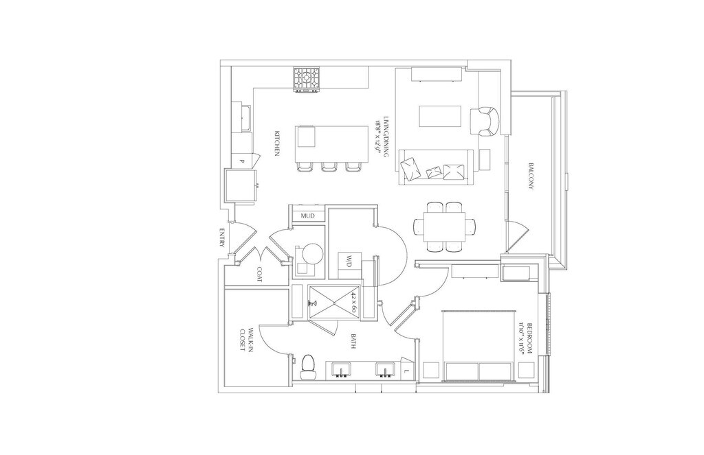 1 Dormitorio, 1 Baño, 718 pies²Galería del Modelo