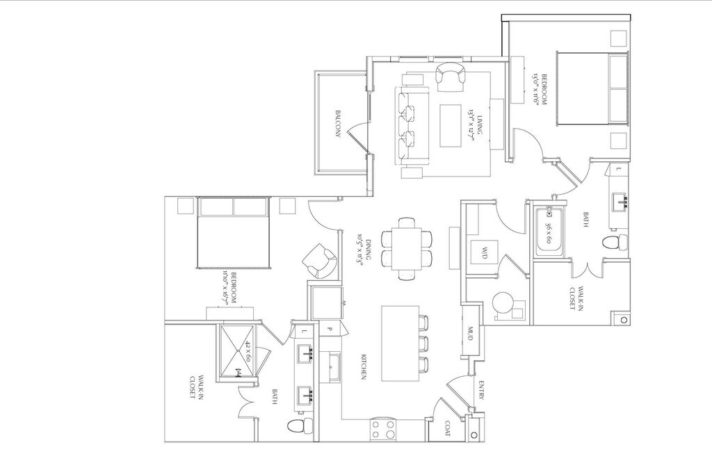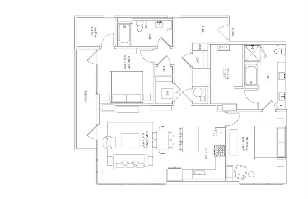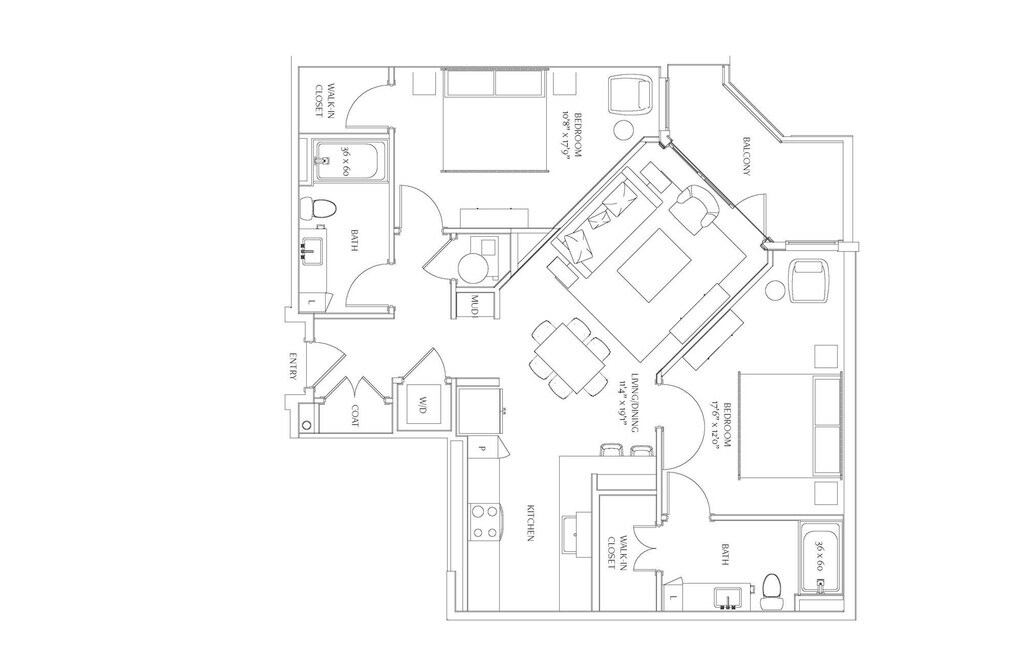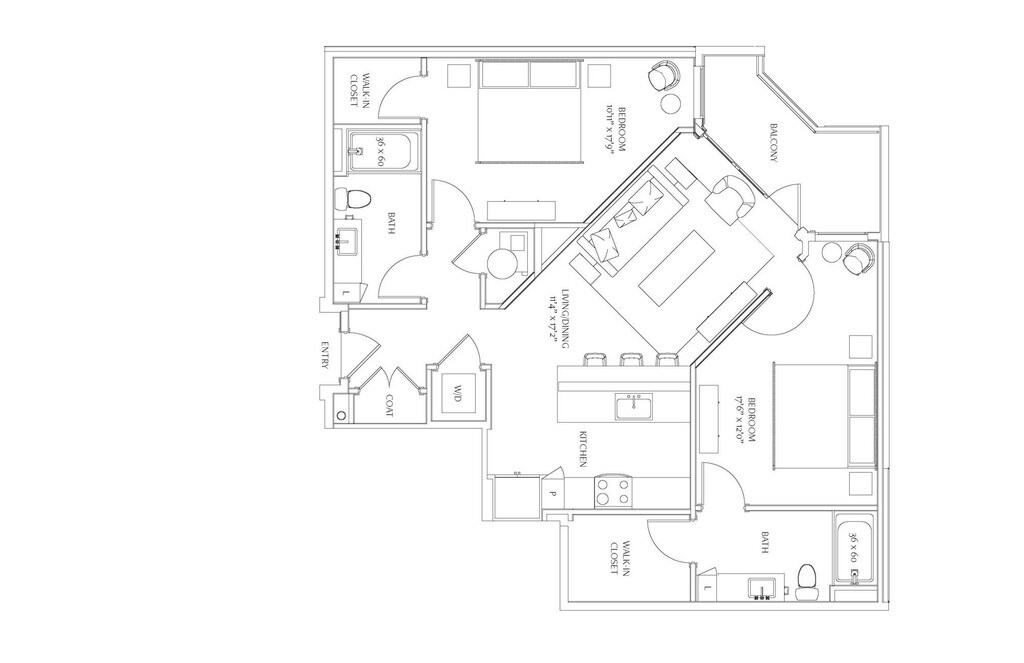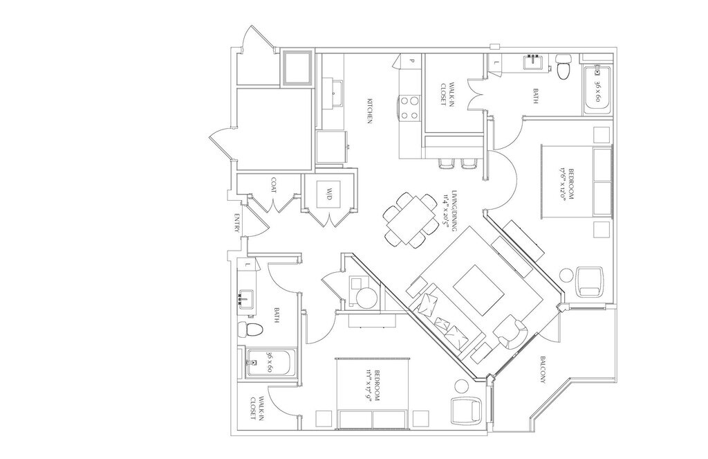 Modelo de apartamento: A7T1 Dormitorio, 1 Baño, 832 sq ftNo Disponible![]()