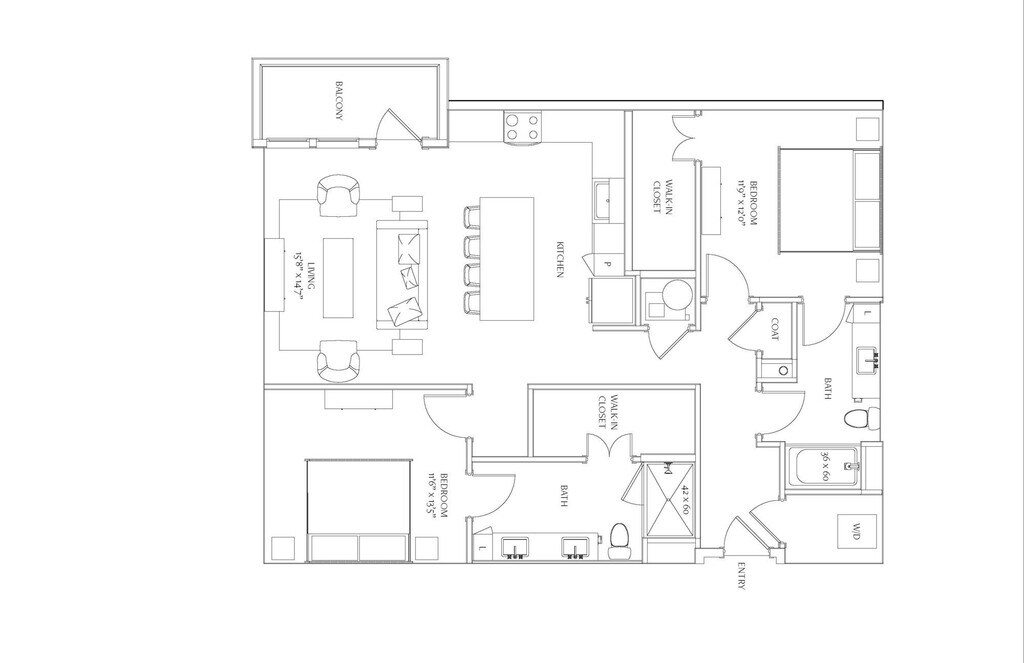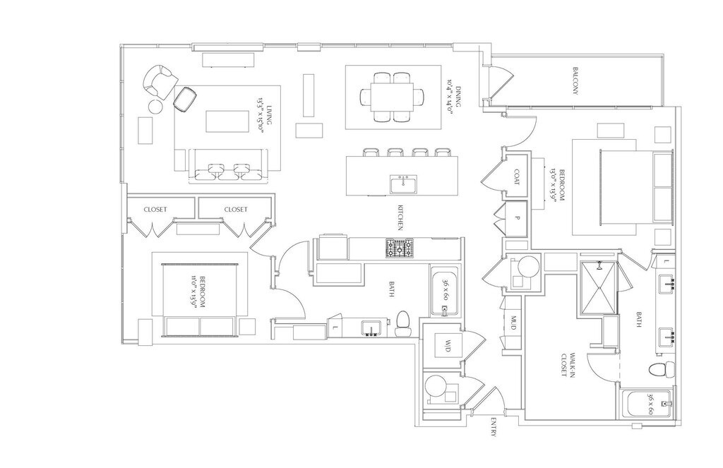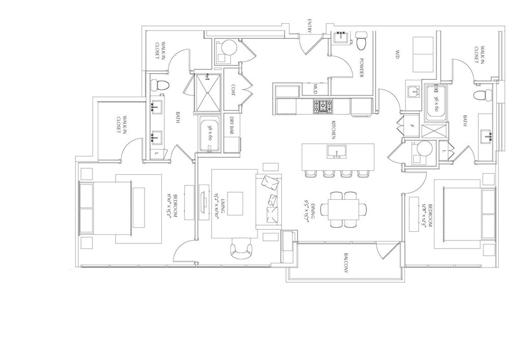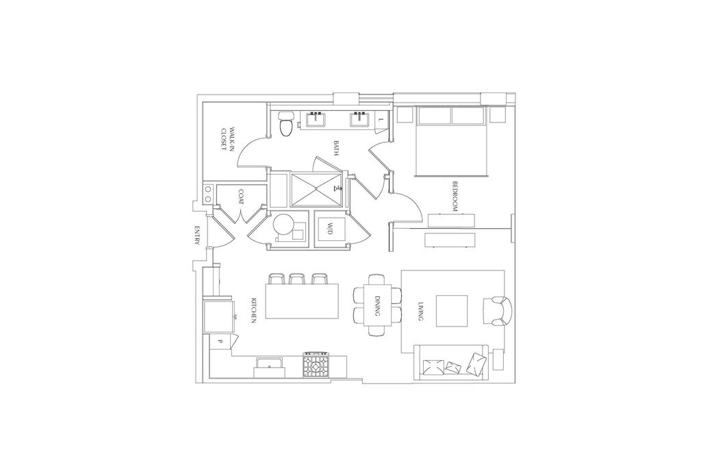 1 Dormitorio, 1 Baño, 852 pies²Galería del Modelo