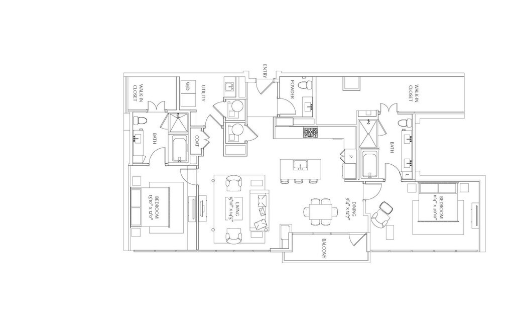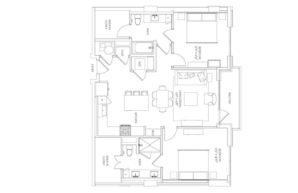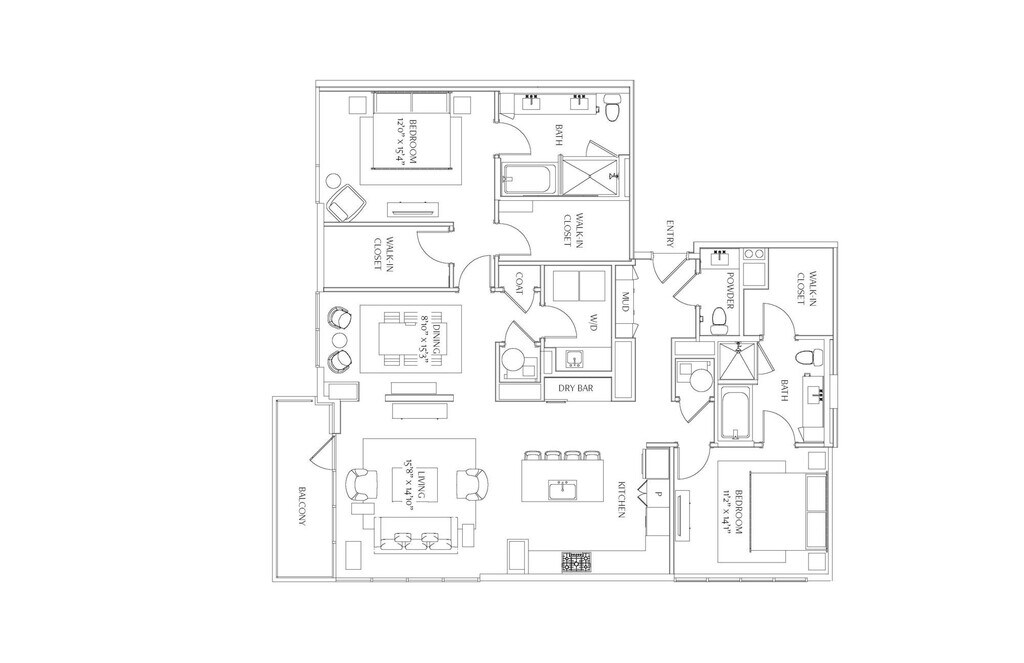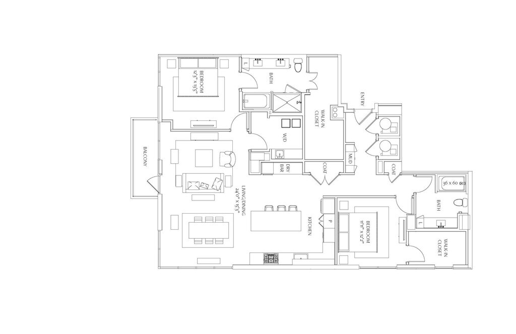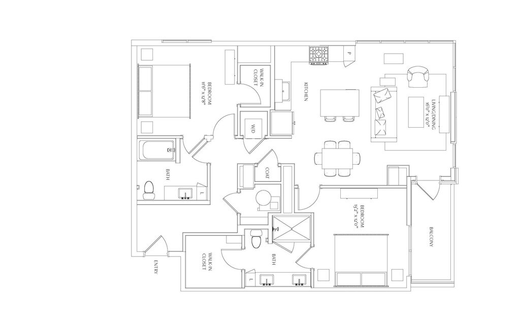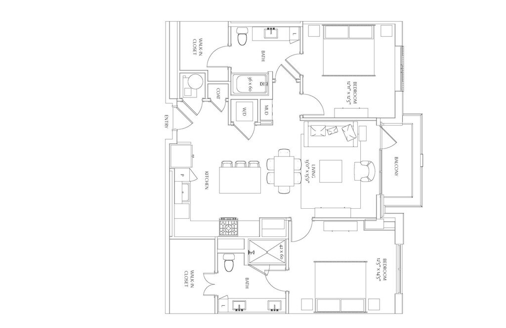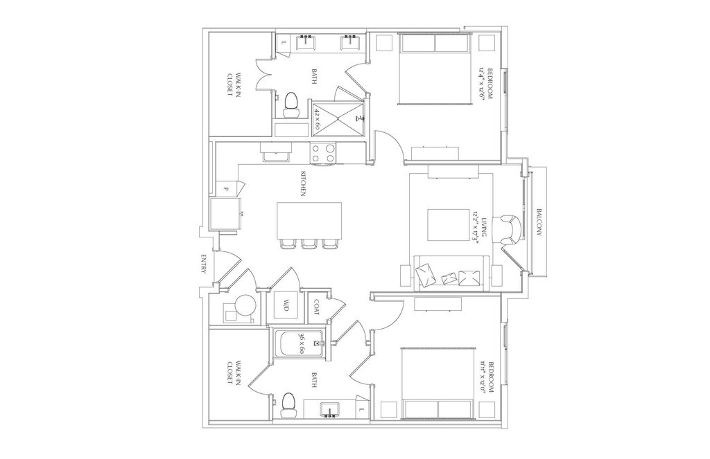 Modelo de apartamento: A12T1 Dormitorio, 1 Baño, 921 sq ftNo Disponible![]()