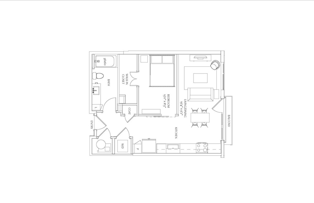 Modelo de apartamento: A31 Dormitorio, 1 Baño, 718 sq ftNo Disponible![]()